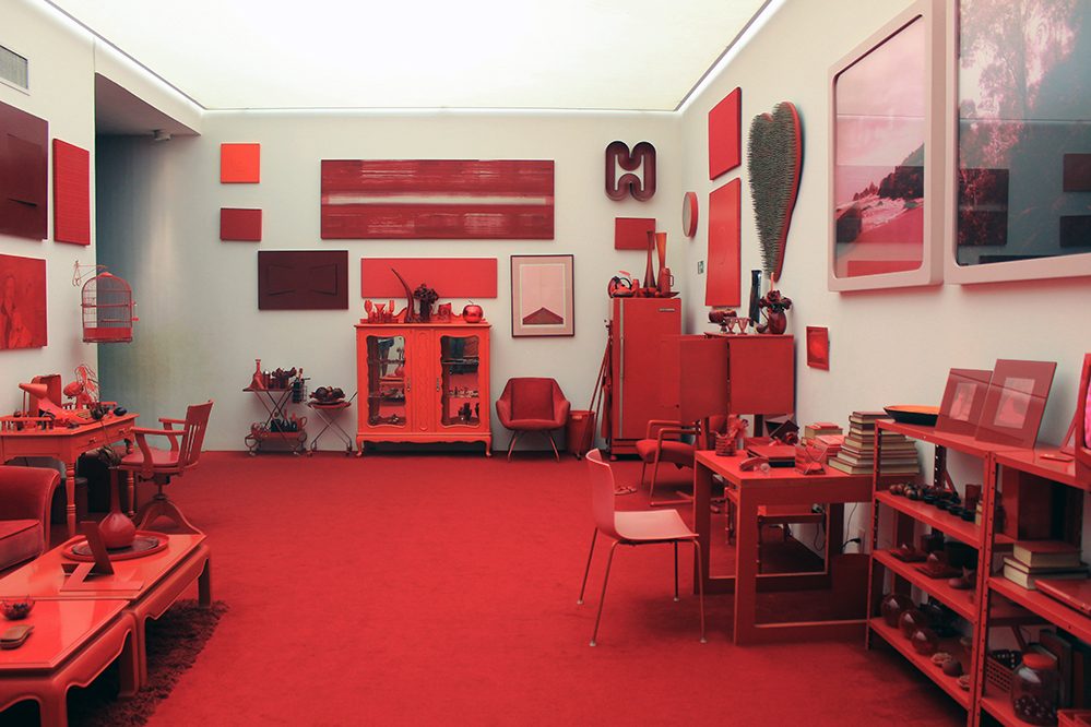 Essa é uma das salas mais famosas do Inhotim e foi criada por Cildo Meireles, artista que possui várias obras no museu. Desvio para o vermelho é uma obra bem marcante. É preciso tirar o calcado para entrar, para não estragar o carpete vermelho — mesma cor de todos os outros objetos presentes ali (até o que está dentro da geladeira!).