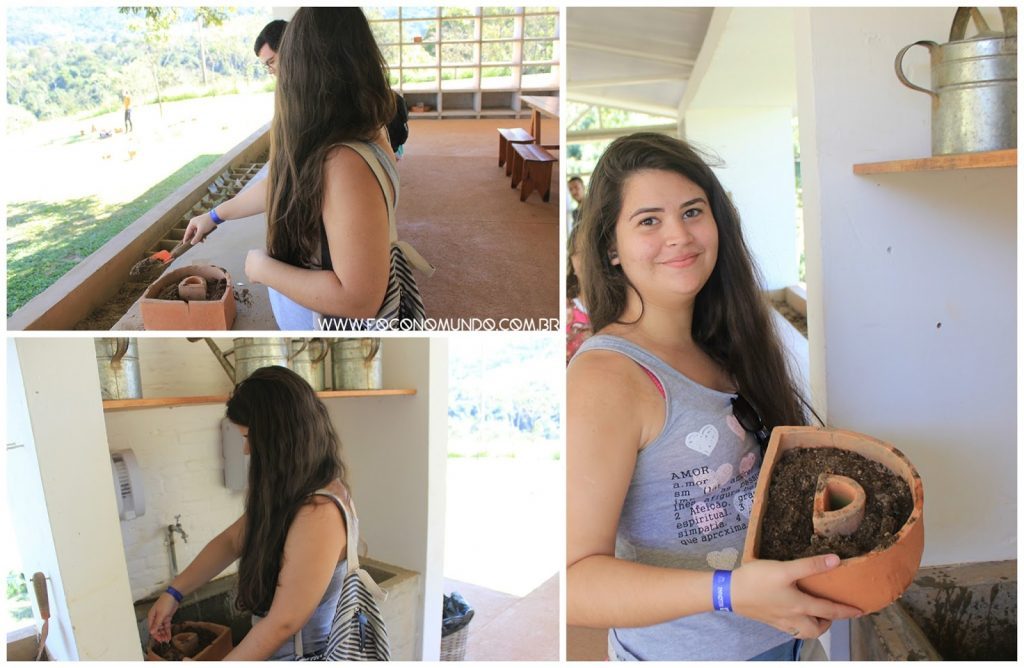 Essa é uma das atrações mais populares do Inhotim e foi a minha preferida. São várias letrinhas de cerâmica, que podem ser usadas para formar nomes ou frases para fazer fotos. Mas na verdade, as letras são vasos para plantas, e no mesmo local você encontra sementes e acessórios de jardinagem. Depois de formar as iniciais do blog e o nome do grupo @uaitravelmg, eu peguei a inicial do meu nome e plantei um amor perfeito.