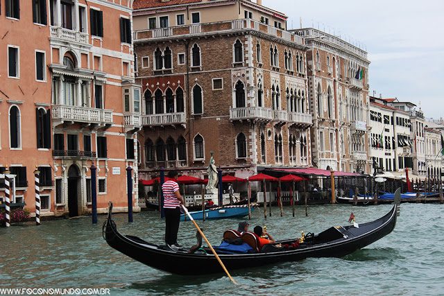 Primeiro porque é super caro, chegando a custar 100 euros um passeio de menos de uma hora. Segundo porque não achei tão romântico assim — a maioria das gôndolas estava com famílias inteiras, e não casais. Terceiro porque só de olhar eu já tinha a impressão de que aquilo podia virar a qualquer momento (morro de medo!).