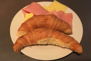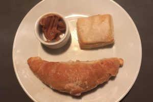 O café da manhã é servido até as 10h30, no restaurante do hotel, um lugar é lindo. As opções são básicas e foram as mesmas nos três dias que comemos lá, mas estava tudo muito gostoso. Havia pão de forma e torradeiras, frios, geleias, doce de leite, croissants (ou medialunas), alguns bolos, frutas, café, leite e sucos.