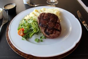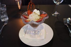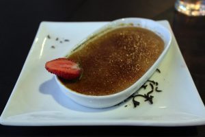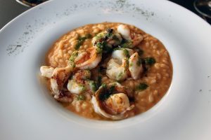 O restaurante nos ofereceu um jantar completo, com entrada, prato principal, sobremesa e bebidas. Para a entrada, pedimos uma fritada de camarões equatorianos. Os pratos principais foram um risoto de camarão e um bife de lomo liso acompanhado de purê de batatas. Para a sobremesa, escolhemos um creme brulé de lúcuma e um creme de chocolate com sorvete e morangos. Ainda, escolhemos um vinho dentre as várias e várias opções que o restaurante possui.